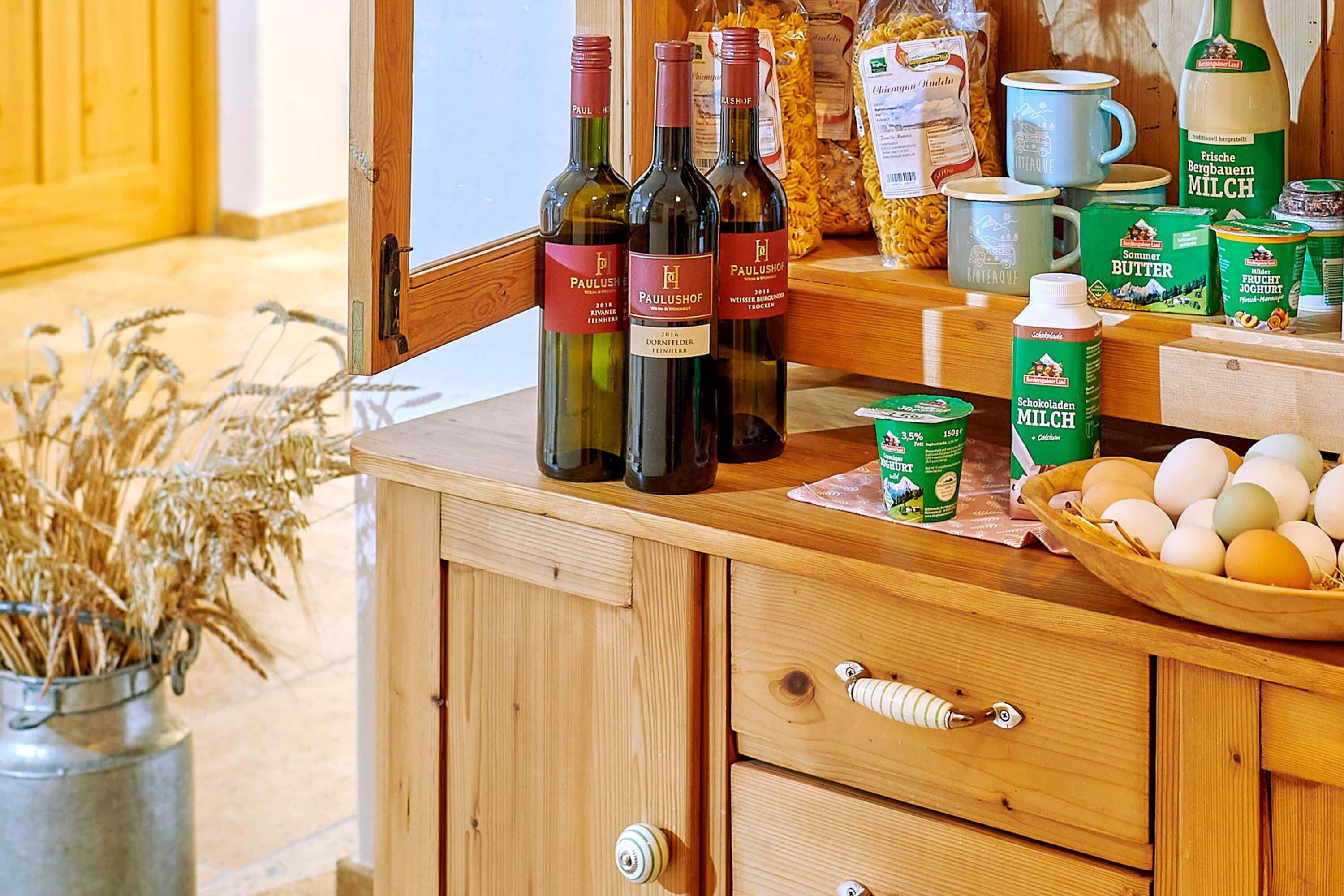 - Hofeigene und regionale Produkte, wie Milch, Eier, Honig und Holzofenbrot